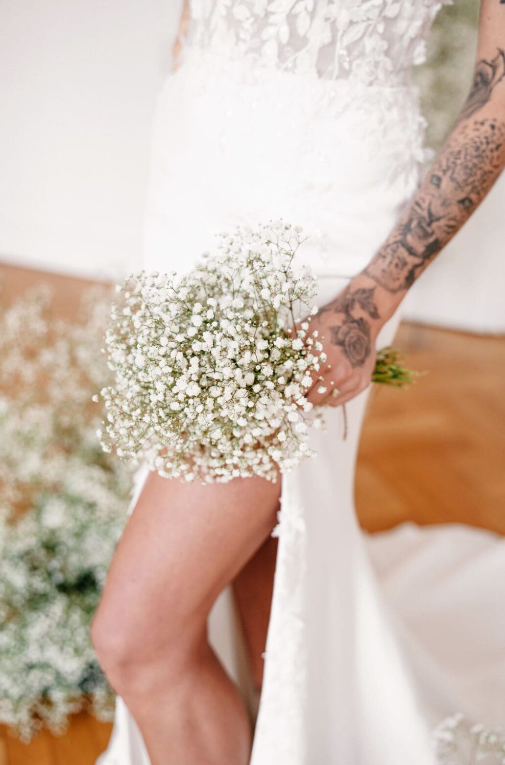 Das Modell Gwen von Sanna Lindström ist die perfekte Wahl für Bräute, die an ihrem Hochzeitstag sowohl Leichtigkeit als auch Eleganz erleben möchten. Mit seinem wandelbaren Design verbindet es die Raffinesse eines körpernahen Brautkleids mit der Verspieltheit eines luftigen Rockaufsatzes.