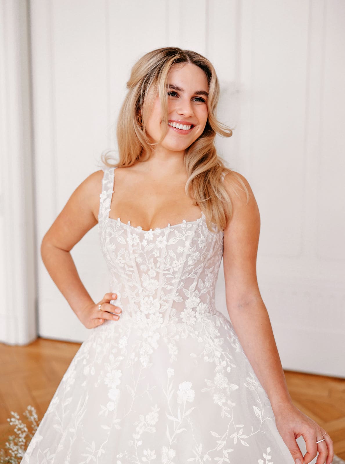 Die Kleider der Designerin Sanna Lindström verbinden skandinavische Leichtigkeit mit romantischem Design und feinster Handwerkskunst. Jedes Brautkleid spiegelt einen Hauch von nordischer Eleganz wider – filigran, feminin und voller Persönlichkeit. Genau das macht diese Linie zur perfekten Wahl für moderne Bräute, die zeitlose Schönheit und Individualität suchen.